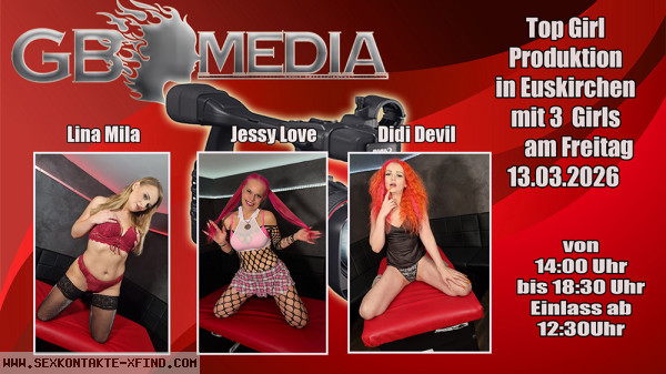 | Wir laden dich ** 13.03. in der Zeit von 14 – 18.30 Uhr (Einlass ab 12.30 Uhr) zur Produktion mit Didi Devil, Jessy Love und Lina Mila in die Villa Classico in Euskirchen ein. Der Produktionskostenbeitrag beträgt 130 Euro und beinhaltet alle anfallenden Kosten wie z.B. der Gesundheitstest (HIV und Syphilis) Getränke, Buffet, Kosten der Location, Pool und Sauna sowie der allgemeinen Produktionskosten. Masken sind Pflicht. Als Erinnerung bekommst du von uns die fertig geschnittenen Filme per email zugeschickt. Eine Anmeldung zur Produktion ist nur über unsere Webseite möglich. Wir freuen uns auf deine Teilnahme. |